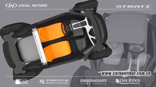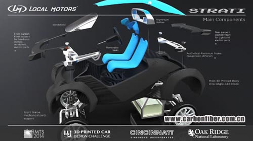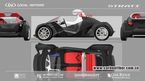 Local Motors方面表示,Strati汽車所用的碳纖維復(fù)合材料由Sabic創(chuàng)新業(yè)務(wù)部獨家提供。該新型3D打印汽車全身由40個部件組成。其中,13-20%為碳纖維增強型復(fù)合材料,87-80%為ABS樹脂。
