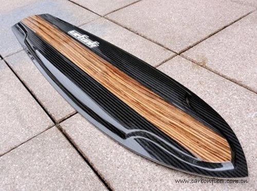 碳纖維滑板是由工業(yè)設(shè)計師和F1的復合技術(shù)人員Luxat在德國科隆設(shè)計出來的。主要使用碳纖維,中間使用楊柳木,他們用0.5毫米碳纖維拋光到鏡面精加工的單板鑲嵌完成。