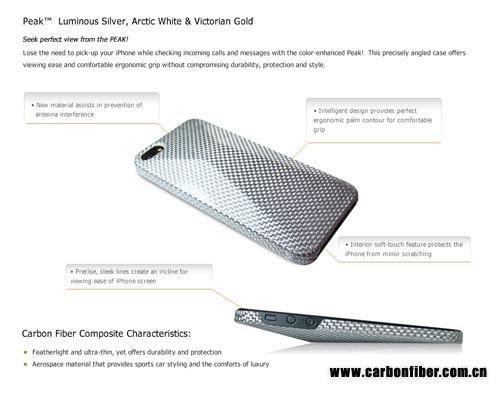 今日,碳纖維已成為時尚、流行與著重功能訴求商品所標榜的創(chuàng)新材料。monCarbon展現(xiàn)了獨一無二的碳纖維精致工藝。在塑料與皮革充斥的手機配件領(lǐng)域中,monCarbon為您量身打造的每項設(shè)計,突顯了使用者的卓然品味。以優(yōu)雅質(zhì)感結(jié)合經(jīng)典碳纖維設(shè)計,是monCarbon設(shè)計團隊致力創(chuàng)造的美好體驗。