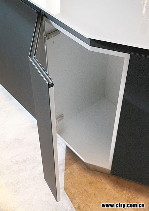 據(jù)VALCUCINE傳訊經(jīng)理Daniele Prosdocimo表示,該款「只此一套」的廚櫃組合,由著名設(shè)計師梁志天操刀設(shè)計,以充滿型格的黑灰色為主調(diào),獨特之處在於物料方面,棄用木板、夾板,改用一級方程式賽車的外殼質(zhì)料──碳纖維作櫃門,其厚度只有2mm,令廚櫃結(jié)構(gòu)更輕巧堅固,而且能有效抵禦高溫、蒸氣以及由水分造成的侵蝕磨損。