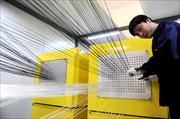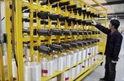 工人在碳纖維復(fù)合芯導(dǎo)線生產(chǎn)線上緊張工作。江蘇連云港中復(fù)碳芯電纜科技有限公司是專業(yè)從事碳纖維復(fù)合材料芯導(dǎo)線開發(fā)和生產(chǎn)的企業(yè),第一條碳纖維復(fù)合芯導(dǎo)線生產(chǎn)線目前已經(jīng)成功投產(chǎn),年生產(chǎn)能力達(dá)到2萬(wàn)公里,填補(bǔ)了碳纖維電纜在國(guó)內(nèi)電力領(lǐng)域大規(guī)模應(yīng)用的空白。