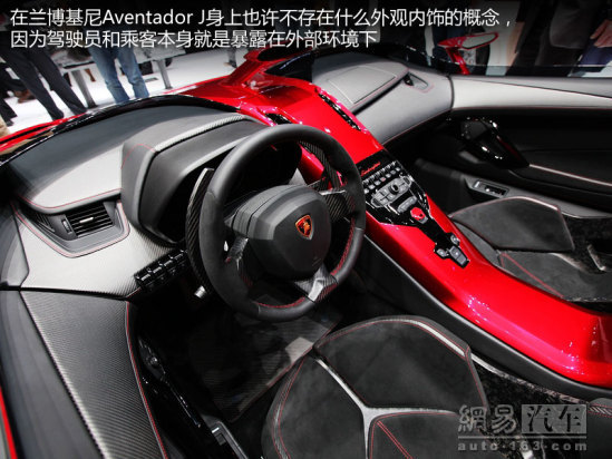 在蘭博基尼Aventador J身上也許不存在什么外觀內(nèi)飾的概念,因?yàn)轳{駛員和乘客本身就是暴露在外部環(huán)境下,有時候甚至充當(dāng)車身配重的角色,作為零件來講,也許這是最不容易被破壞的部分,因?yàn)橐磺械娘L(fēng)馳電掣都是在安全這個大前提下。