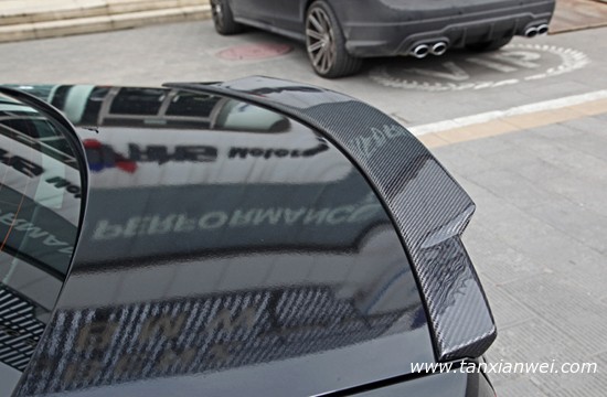 奔馳C74也許一些朋友還不是很了解。C74是來自美國佛羅里達的Renntech推出以奔馳C63 AMG為基礎的寬體改裝版車型。74所代表的意義是指,這款車的后軸距加寬至74英寸(約1880mm)。除此之外,Renntech還賦予了奔馳C74非常多更為兇悍的外觀套件,其中就包括這款造型獨特的碳纖維尾翼。較奔馳C63原廠尾翼,C74款碳纖維尾翼不僅造型更為俊俏,同時結合空力學原理能夠為車輛高速行駛提供更加突出的穩定性。目前售價為1500元人民幣。