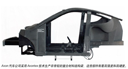 輕型汽車可以將油耗和尾氣排放降到最低,市場對輕型汽車的需求促使該公司開發了“黑車身”碳纖維復合材料系統。據說,一輛城市汽車的“黑車身”系統僅重50公斤;一輛中型轎車則僅重80公斤。Axon還說,能夠快速建立經濟性汽車平臺的方法,還有可以隨著需求變化而增加的最佳初始產量有著巨大的發展潛力。