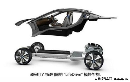 寶馬i8采用了與i3相同的“LifeDrive”模塊架構,這種全新的設計理念將車身結構分成了Life和Drive兩個獨立的部分。