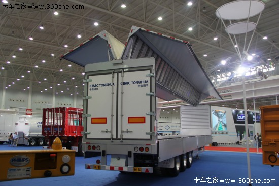 翼展式車型在今年的武漢商用車展上,出現的頻率相當高,這不中集也有一臺14.6米 鋁合金翼展式半掛車,配美鋁鋁合金車輪,富華車橋,經詢問該車價格在20萬元左右。 copyright 123456