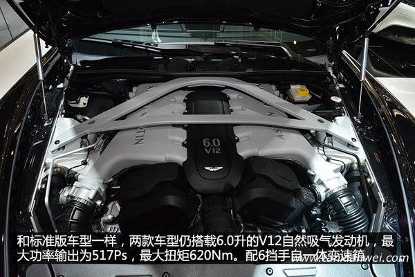 動力方面,因為兩款特別版車型僅僅是為了突出視覺上的魅力,所以動力輸出以及操控上并沒有進行任何調整。和標準版車型一樣,兩款車型仍搭載6.0升的V12自然吸氣發動機,最大功率輸出為517Ps,最大扭矩620Nm。配合6擋手自一體變速箱之后,該車的百公里加速時間為4.6s,最高車速可以達到295km/h。