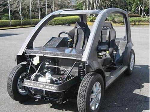 為展示這一領先技術,帝人開發了一款電動概念車,其車架完全由熱塑性碳纖增強塑料打造,僅重47公斤,約一輛傳統汽車車架的1/5。這輛電動車行駛速度可達60公里/小時,可行駛100公里,足以體現這一材料的輕量化優勢。