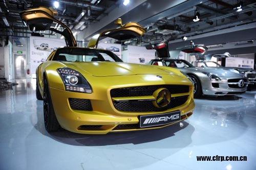 梅賽德斯-奔馳推出金色的SLS AMG跑車。該車并不是像本屆車展展出的貼金雷克薩斯一樣奢靡,而是采用特別配制的金黃色絲緞效果油漆,車內(nèi)的一體式中控臺也大量應(yīng)用了碳纖維材料。