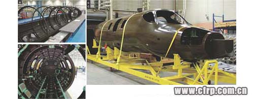 這些CFRP制部件由供應商提供(圖9)。在對各部分進行成形後,組裝成一個整體,利用高壓釜使其硬化。這樣就製造出了輕巧而且堅固的機身。
