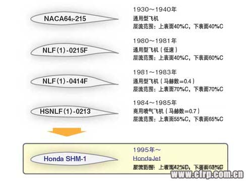 自然層流翼型的研究始於1930年代,但由於在高速飛機中使用時失速特性差,未能投入實用。為HondaJet開發的自然層流翼型「SHM-1」從根本上調整翼型,解決了過去的課題。