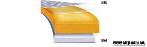 三明治結構特點是面板選用高強度高模量碳纖維復合材料制作,承受較大的彎曲負荷;芯材選用一定剛度和強度的低密度材料如泡沫、蜂窩等,其抗剪切性能突出,可承受較大的沖擊載荷;膠結層將面板和芯材連接在一起,承受剪切應力;由于選用低密度芯材,重量會進一步降低。