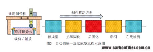 近年來,隨著波音787、空客350等 大型復合材料結構的航空器陸續投入商業運行,標志著先進復合材料結構研制日益走向大型化和經濟型——從力學性能的最大化轉向通過低成本技術來獲得經濟上可 承受的結構,這一過程的轉變與先進復合材料的自動化制造技術的發展是有著密切的關系。預浸料自動成型技術,包括自動鋪帶技術(ATL)和自動纖維鋪放技術(AFP)和先進拉擠(ADP)等為核心的自動化制造技術成為發展的重要方向之一。目前發達國家在航空航天復合材料制造中廣泛采用的自動化技術,采用預浸料和數字化設計與自動化制造超大、低成本先進復合材料構件,同時,促進了復合材料結構的產量和產品質量的提高,改善了工藝環境,實現綠色制造。