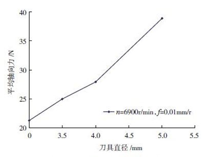 從圖中可以看出:鉆削軸向力隨著刀具的直徑增大而增大。這是因為隨著刀具直徑的增大,鉆頭切削刃切削面積增大,從而導致切削力增大。