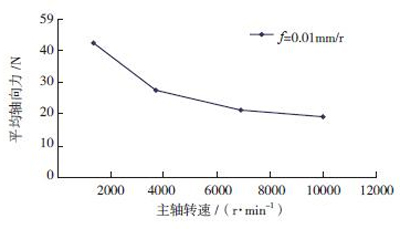 從圖中可以看出:軸向力隨著轉速的增加而呈現減小的趨勢,曲線的曲率隨著轉速的增加逐漸減小,在轉速超過6000r/min 后,曲線已經變得很平緩。由于切削熱的存在,轉速越高,鉆削溫度越高,且高速下,對鉆床剛度要求也高。因此,轉速不宜太高,建議轉速取在3000~6000r/min范圍內,對于剛度好的機床,可以適當提高轉速;對于剛度差的機床,可以適當降低轉速。