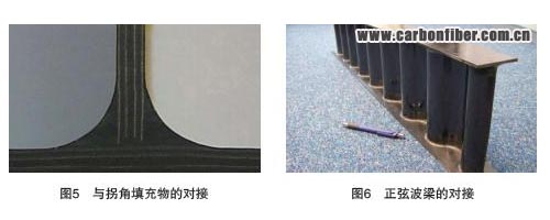 2003 年,一種碳/ 聚醚醚酮單向帶(Cytec)制成的客機地板梁得到發展。這種可高效制造產品很適合航空業,因此,緯線鋪放(pick & place)被選作腹板和緣條的預成型體成型方法。所有這些元件都在共固結的過程中被熔合在一起。在研發工字梁組合件的過程中,曾經尋求一種可簡化制造大量加強肋的方法。該方法是“對接”1 塊平層壓板,將其與普通工字梁共固結在一起(圖4)。這被證明是一個有效的解決方案。在制造上比最初設計的壓力成型加強肋的方法簡單得多。對接強度采用注射成型,增加了坡口圓角半徑,得到了優化(圖5)。