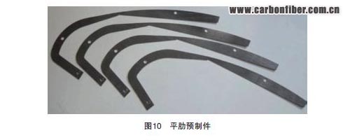 這個始于福克內部產品改進實踐的產品研發技術,現在成為一個名為COALESCE(低成本高效率先進前緣結構)的歐洲框架項目的一部分。新型前緣是一個多肋薄蒙皮設計。肋為平板預制件(圖10),在產品熔化(共固結)過程中對接到蒙皮上。蒙皮在一副陽模上用纖維鋪放而成。2 部分同時制造,接合處由1塊真空袋網膜板覆蓋,然后共固結。 123456