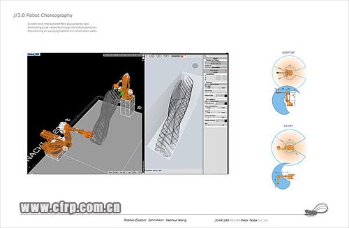 CarbonDesign 的Studio繼續,上一周的時間,內部搞了一個小的competition,原因是Peter Testa整合了工廠的兩個機器人,然后把studio里每三個人分成一組,要求每組提出一個使用機器人的方法,然后作出Demo。
