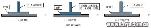 (4)分析制件的成型工藝方法,是共固化、共膠接還是二次交接(圖3)。共固化中,所有層為濕鋪層一次進罐,需要較多模具組合到一起同時使用,通常整套模具較復雜;共膠接為干濕件進罐固化,需要一部分零件的成型模具,及已固化零件與濕鋪層二次進罐固化的模具;二次膠接時所有零件已固化,通過膠膜把他們固化到一起,需要所有零件的成型模以及二次膠接的定位模具。