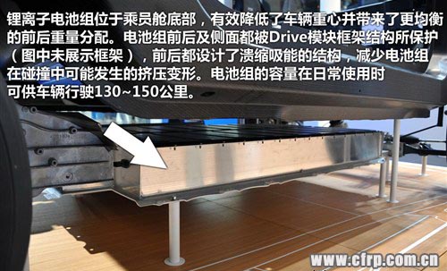 寶馬i系列車型采用了“LifeDrive”模塊架構(gòu),它由“Life”和“Drive”兩個(gè)獨(dú)立的模塊組成,“Life”代表乘員艙部分,采用超輕量化并且高強(qiáng)度的CFRP碳纖維復(fù)合材料構(gòu)成,而“Drive”則將懸架、蓄電池組、驅(qū)動(dòng)系統(tǒng)和碰撞防護(hù)結(jié)構(gòu)納入整個(gè)模塊中。仔細(xì)看就會(huì)發(fā)現(xiàn),這種結(jié)構(gòu)的理念其實(shí)與傳統(tǒng)的非承載車身相似,不過高強(qiáng)度的復(fù)合碳纖維乘員艙是那些傳統(tǒng)非承載車身的車廂所望塵莫及的。