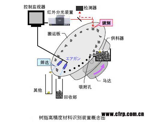 三菱電機和島津制作所于2012年12月19日宣布,共同開發出了“再利用樹脂高精度成分識別技術”,能夠在廢舊家電循環再利用工序中以99%以上的精度瞬間識別出回收的樹脂的品種。該技術通過向搬運板上的樹脂碎片照射波長比近紅外光長的中紅外光,然后分析其反射光來識別樹脂的品種。